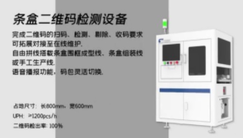 中科天工智能二維碼檢測(cè)設(shè)備 更智能,識(shí)別重碼、漏碼、錯(cuò)碼; 更高效,自動(dòng)檢測(cè)、剔除、收碼。 一次突破,檢測(cè)成功率100%;一場(chǎng)顛覆,搭載條盒圍框成型、組裝線,整線再近一步。中科天工智能二維碼檢測(cè)設(shè)備 更智能,識(shí)別重碼、漏碼、錯(cuò)碼;