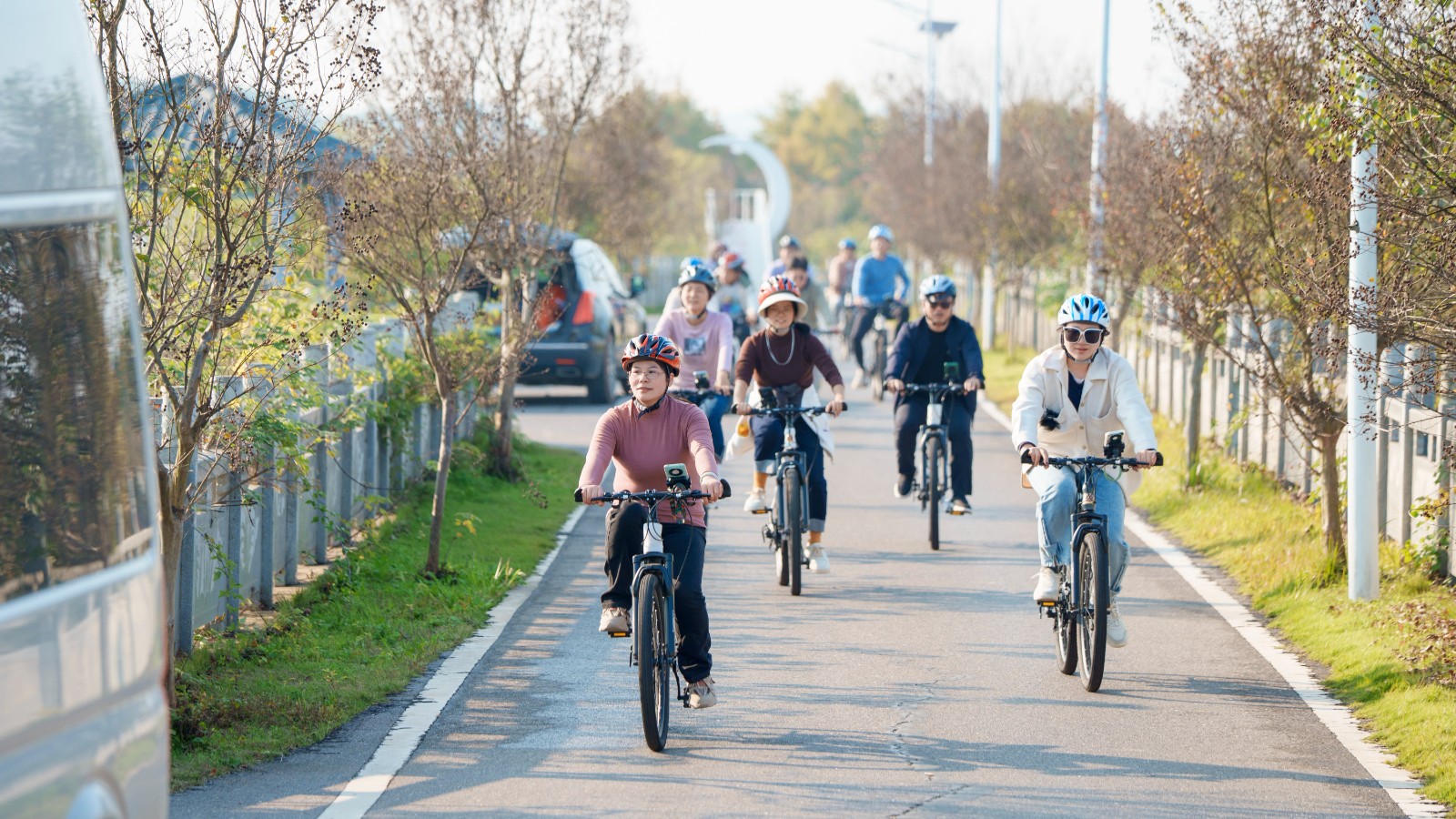 騎行隊(duì)伍時(shí)而加速前進(jìn),時(shí)而駐足拍照,風(fēng)聲、笑聲、車輪聲交織成一首快樂協(xié)奏曲,工作中的緊繃感在這一刻隨風(fēng)而逝。
