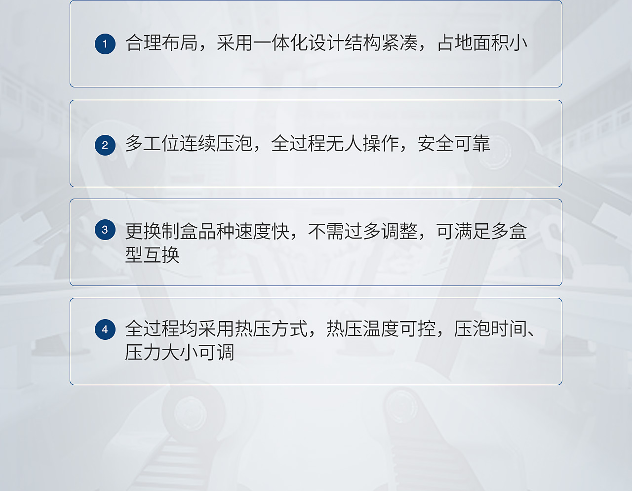 TG-PB35F全智能煙包壓泡機(jī)是我司針對(duì)高端精品煙盒包裝領(lǐng)域開(kāi)發(fā)的通用壓泡機(jī)。
