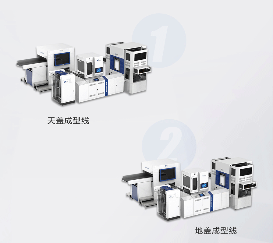 該整線完整的解決了盒坯成型、異型天地蓋成型、自動貼襯、天地蓋組裝、自動施膠組裝子件、自動套袋等全套工藝;采用模塊化設(shè)計、分段式控制、數(shù)字化調(diào)節(jié),操作簡單,人力極大精實。是我司針對天地蓋